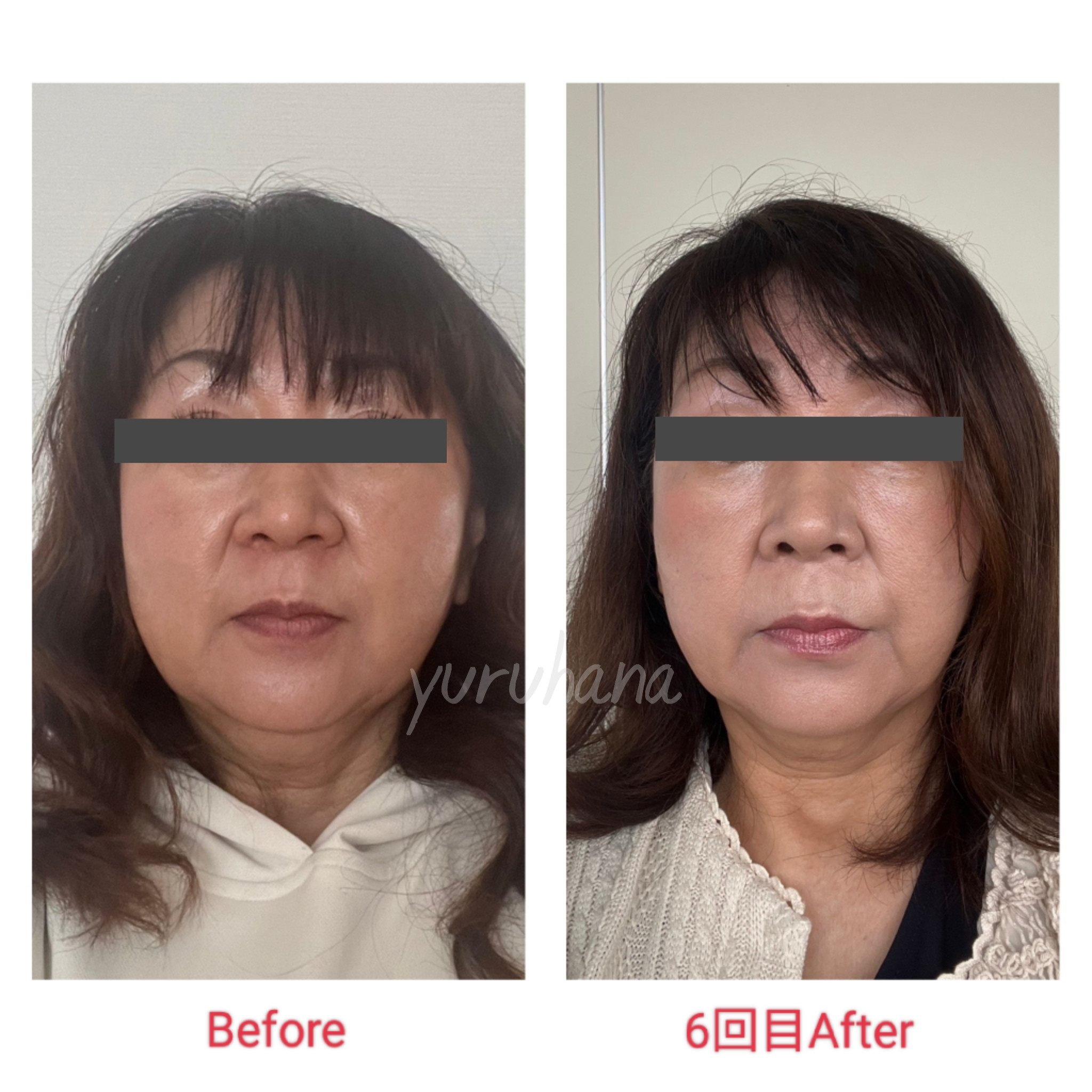 一年程前から特に左側のフェイスラインのたるみが気になっていて、自身でセルフマッサージなどしていたのですが効果を感じられず、どうにかしてスッキリさせたい!と、yuruhanaさんの小顔矯正に訪れました。